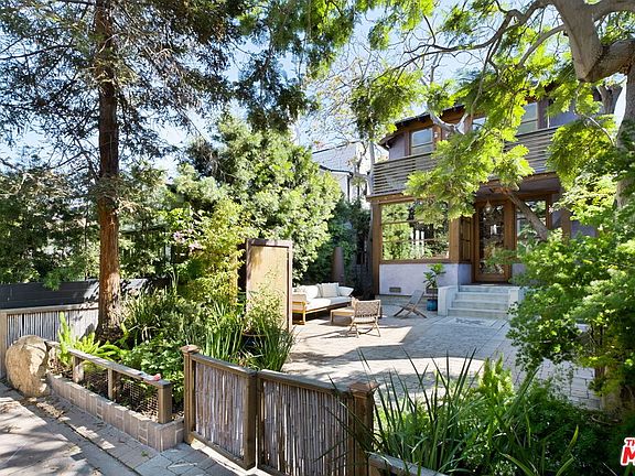 Beautiful custom-designed bungalow in the heart of Venice by local architecture firm Evan Braun Design. Built in 2007 around two trees in the gated front courtyard, this unique 3 bedroom, 2.5 bath home blends Craftsman and Japanese styles, inspired by nature's warmth and tranquility. The home boasts custom glasswork, oversized wood-framed windows, wood-paneled ceilings, and intricate tile & concrete flooring. A built-in daybed enhances the main living space, while a shoji-screened window connects to the kitchen featuring a Wolf range, green soapstone countertops, floating shelves, and a large walk-in pantry. Upstairs, the secondary suite includes a studio/office and bedroom separated by sliding shoji screens, and a hall bath with a clawfoot tub and rain shower head. The primary bedroom offers high ceilings, a balcony, and an open en-suite bathroom with a Japanese seated shower, wooden ofuro soaking tub, and ocean-inspired tile work. Enjoy sunsets and the coastal breeze from the rooftop deck. Additional features include an attached garage, an extra off-street space, and upstairs laundry. Located on a tree-lined walk street, just blocks from Abbot Kinney Blvd, Rose Ave, the Venice Canals, and the beach!