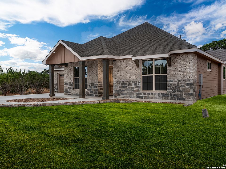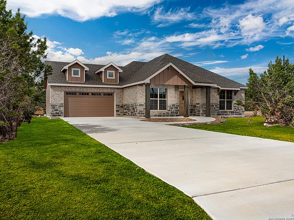Welcome to 118 Western Trail, a beautiful, modern farmhouse by MasterPeace Homes, located in the highly desirable Bandera River Ranch in the stunning Texas Hill Country just a few minutes outside of Bandera, Texas- Cowboy Capital of the World. This property offers the tranquility of a half-acre lot, developed to maximize privacy. The two large covered outdoor patios extend the living area and provide direct access to Mother Nature in all her glory. Step inside to discover a beautifully designed interior that exudes modern elegance while paying homage to the area's ranch lifestyle. This spacious home boasts 3 bedrooms, 2.5 bathrooms, and a roomy 2 car garage. Its thoughtful layout provides ample space for comfortable living and welcoming guests who love the quiet country escape and impressive live music scene of Bandera. The 1,922 well planned square feet offer an open and airy feel that is accentuated by large windows, allowing for abundant natural light. The heart of the home showcases a gorgeous kitchen with sleek, durable quartz center island; plenty of cabinet space with beautiful painted maple cabinets; corner pantry and stainless steel appliances. The living spaces are designed to offer the right blend of coziness, style and privacy, featuring high-end finishes and the perfect ambiance whether spending time with family or unwinding after a long day. Bandera River Ranch is a community that offers the feeling of a country getaway while also providing desirable amenities like a swimming pool, tennis and basketball courts, and a large, beautiful river park with access to the Medina River. This new construction home is meticulously crafted with the attention to detail that is a hallmark of MasterPeace Homes. Located less than 30 minutes from San Antonio, Kerrville, or Boerne, you get the best of all worlds. Don't miss your chance to make 118 Western Trail your forever home.