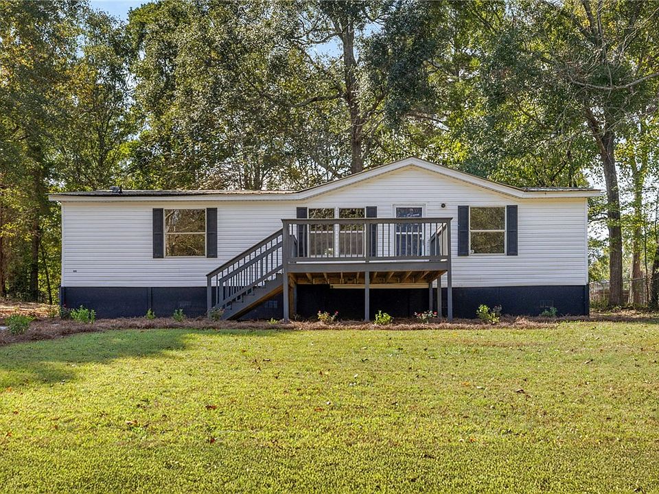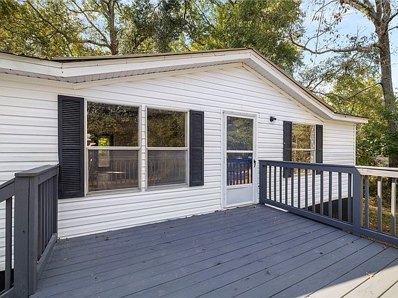 Welcome to luxury and charm with all of the extras! Located on a peaceful, private, and secluded lot with custom finishes throughout, this FULLY renovated doublewide will WOW you every step of the way. You are welcomed into the expansive living area with fireplace, custom wood beams, new kitchen cabinetry, appliances, butcher-block countertops, and a view over your spacious backyard. The primary ensuite boasts a new freestanding vanity and walk-in closet set apart from the two additional bedrooms, all with brand new flooring and fresh paint throughout. A spacious front deck and back patio provide multiple options for outdoor entertaining as well as an out-building on site. No HOA and no city taxes make this home a dream! NEW metal roof installed in 2025 and HVAC installed in 2023! Home is detitled and FHA compliant. Schedule your showing today!