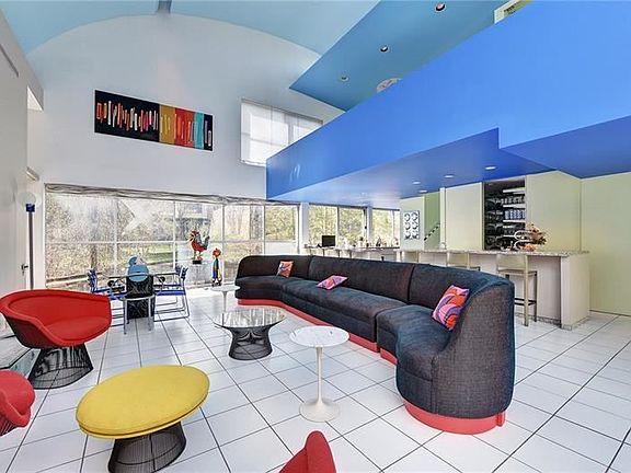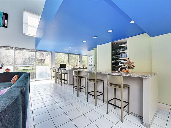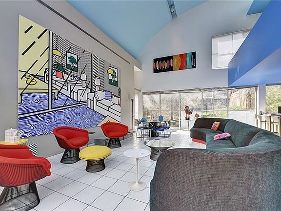 We invite you to come to view and experience this dynamic modern house and make it your home. situated in a pastoral setting at the end of a secluded drive nearby the elegant Chatham University campus, this unique house was designed by renown architect Robert Venturi, winner of the 1991 Pritzker Architecture Prize, and featured by Pittsburgh History and Landmarks Foundation as one of the select few in the world. This breathtakingly beautiful and completely private house features a floor to twenty feet high vaulted ceiling wall of windows patterned like a ship's wheel with a southern exposure which draws in the outside. it is surrounded by gentle slopes with exquisite plantings in a setting beside a venerable century old stone bridge. The interior of the house features a lap pool and other one of a kind design details