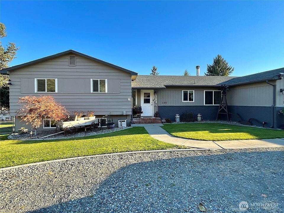 OKANOGAN - COMPLETE REMODEL on 1/2 ACRE IN CITY LIMITS! This 5 bed/3 bath charming, 2,300+sqft home offers an extensive kitchen w/dining area, ss appliances, farmhouse sink, built-in oven, pantry & lots of cabinets; large bright living room w/picturesque windows, ceiling fans, double sided fireplace & french doors to the man cave; primary suite w/double closets, 3/4 bath w/laundry shoot. Finished daylight basement w/laundry room, 2nd primary bedroom w/1/2 bath en-suite, storage & outdoor access. Step out to a fenced backyard oasis w/gazebo, enclosed deck w/hot tub, 24x30 shop w/wood & pellet stoves, basketball area; plenty of parking includes attached 2-car garage, RV, carport, driveway, off-street & gated access.