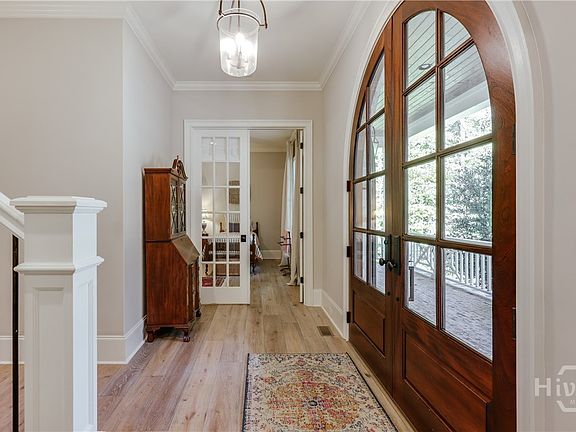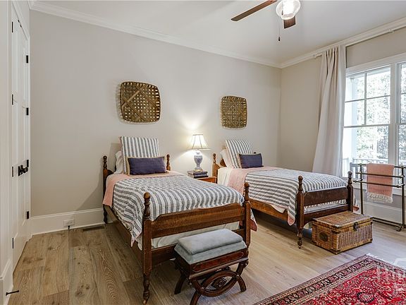 Set on eight private acres in Oconee County with an Athens address, this Georgian-inspired estate combines timeless architecture with sophisticated design. The main level features a formal dining room, a stunning kitchen with quartzite counters, custom cabinetry, wine tower, pecky cypress beams, and a hidden walk-in pantry. The adjoining living area and screened porch overlook manicured grounds and a resort-style pool with spa. The primary suite and an additional guest suite are located on the main level. Upstairs includes a media room, two bedrooms joined by a Jack-and-Jill bath, and a third guest suite. The terrace level offers a full living area, bedroom, bath, and direct access to the pool and full pool bath. Additional highlights include an indoor basketball court, three-car garage, and inviting front porch surrounded by mature trees and natural privacy.
