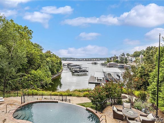 In The Villages at Shawnee Bend, this Lakefront estate blends luxury and lifestyle on over ¾ acre with 154 ft of shoreline, southern exposure, deep water, and excellent cove protection. With 6,788 sq. ft. this estate offers 6 Bedrooms, 6 Full Baths, and 3 Half Baths across a flowing “reverse” style floorplan that puts all the main living areas just steps away from the pool, lake and dock. Elegant finishes include Italian marble floors, two story barrel vault ceilings and 5 fireplaces. A gourmet kitchen features GE Monogram appliances, hammered copper sink, granite counters, Kraft Maid cabinetry, and large pantry. Two lakeside master suites provide direct patio/deck access, spa-inspired baths with oversized marble showers, beverage centers, and custom closets. Additional highlights include a wine cellar, sunroom with fireplace and tumbled stone flooring, and a grand wrought-iron staircase. Outdoor living is unrivaled with a heated infinity-edge pool, 10-person hot tub, outdoor kitchen, stamped concrete patios and lush professional landscaping. Take the cart path to the huge dock with 20x55 slip and deep water. This property is ready for you to make it your own!
