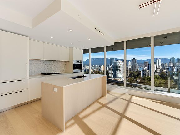 Incredible Views - at Mirabel by Marcon! This 2 bed, 2 bath NE corner home boasts floor-to-ceiling windows with panoramic ocean, city & North Shore mountain views plus a 200sf balcony w/ gas hookup. Gourmet kitchen features Armony Cucine cabinetry, Wolf gas cooktop + wall oven, and Sub-Zero fridge. Luxurious ensuite with Italian marble & double vanity. A/C, high-efficiency heating, and a versatile 2nd bedroom with custom built-ins, desk & Murphy bed. Comes with 2 side-by-side parking & 1 Locker. Steps to parks, seawall & shops. Unbeatable West End location only steps to shopping, parks & seawall. OPEN HOUSE SAT OCT 11 (3-5PM)