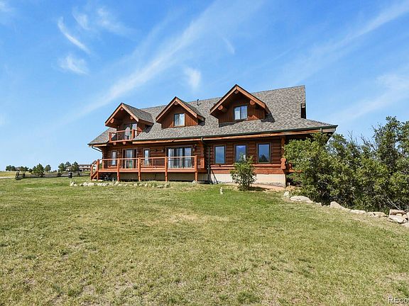 Own your private slice of Colorado paradise with this custom-built log cabin on over 36 acres—just minutes from downtown Castle Rock! This spacious four-bedroom, three-bath home features stunning log construction, soaring wood ceilings, and warm wood finishes throughout, blending rustic charm with modern comfort.