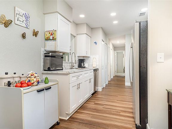 Back sunroomCarpet in the bedroomsLarge fenced yardLight and bright interiorPlenty of cabinet spaceNew stainless steel appliances