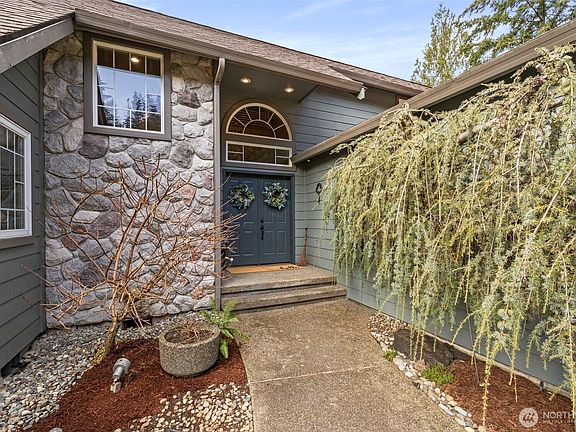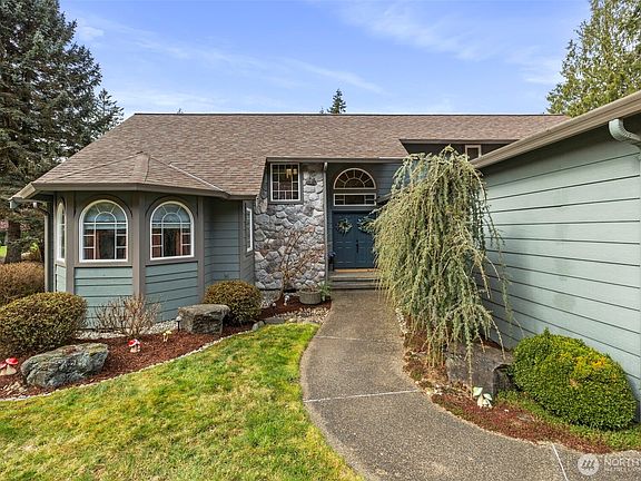 This gorgeous home is a MUST SEE! Tastefully updated with newer carpet & appliances, completely remodeled primary bath and roof just 4 years old. Spacious rooms, vaulted ceilings, home office/den and a bedroom on the main offers many possibilities. Kitchen with quartz countertops & new backsplash, coffee bar and sweet window seat to take in the views. Beautiful hardwood floors, vaulted ceilings & propane fireplace, plus an attached, spacious 3 car garage. Enjoy the golf course and wildlife from your private backyard with patio, gazebo and water feature. All situated in desirable Lakeland Village with 27-hole golf course, clubhouse & restaurant. Additional amenities include trout stocked lake, beach, parks and sport courts.