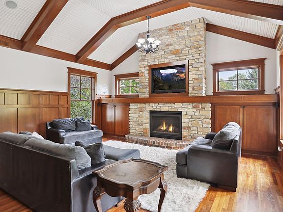 Charming home with an amazing lot on a cul-de-sac. Flexible floorplan with all the spaces you need to live your dream lifestyle. Main floor boasts an open chef's kitchen, cozy living room with gas fireplace, large office, formal dining, a spacious primary suite, laundry, and a private 3-season porch. Relax on the upper covered deck with outdoor gas fireplace.