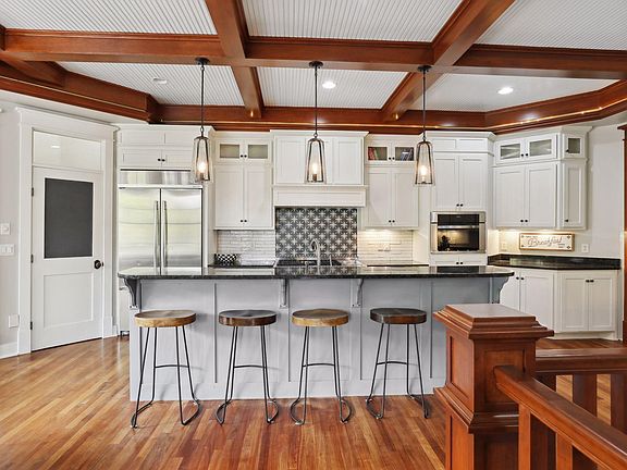 Lower level includes a large bar, family room with a projector to watch the big game or movies, billiards room, 3 large bedrooms, extra laundry, and another porch overlooking the beautiful backyard. Lower level walks out to your private backyard complete with rock garden, pond, wildflowers, and ample entertaining spaces.