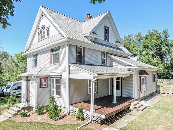 Don't miss out on this historic home in Haslett! Once part of a 200 acre farm, it was built by the Fuller family in 1874. This home has been cared for and loved for well over 100 years. The home features ample living spaces, 5 bedrooms, plus a huge finished bonus room on the 3rd floor. Beautiful woodwork with wood flooring throughout much of the home. A recently added 1 car attached garage is the perfect compliment to the 2.5 car carriage house that also features a huge finished space on it's second story for exercise or home office. The fully insulated carriage house is also outfitted with it's own furnace, ethernet and water/sewer hookup. The property is beautifully landscaped, has a 1 year old roof with 50 year shingles. All of the major work has been done. Move in and make it your own, and write the next chapter of your history here. Seller reserves the gun safe in carriage house, ammo reloading press in basement, HAM Radio antennas, Shelf in L/R, and the spice rack. Schedule Today!