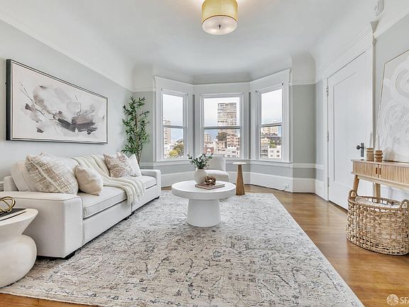 Top Floor 1 bed 1 bath Nob Hill flat with massive Golden Gate Bridge, Coit Tower, and Bay views! The home features hardwood floors, a formal dining room, period details, gas cooking kitchen with stainless steel appliances, and in-unit laundry. The home is complete with shared additional storage, laundry (an additional washer/dryer in the basement), and an outdoor space. Enjoy the best that Nob Hill has to offer in this boutique 6-unit building conveniently located near restaurants and cafes. Excellent public transportation options include the storied cable car and a short commute to Downtown.