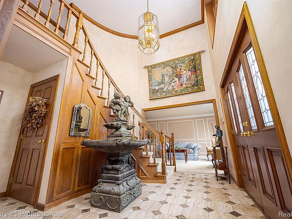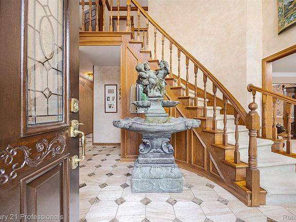 Tucked away on nearly one acre in Oakland Township, this custom 4148 square foot home blends classic Tudor charm with serene natural beauty. Step into a grand foyer with marble floors and a curved staircase. French doors open to an oak-paneled study with built-ins and beamed ceilings. A chef's kitchen offers custom oak cabinetry, granite countertops, Wolf appliances, and a walk-in pantry. The spacious great room boasts cathedral ceilings, skylights, a natural wood-burning fireplace and a wet bar. Upstairs, the primary suite includes turret views, two walk-in closets and a renovated en-suite bath. Three additional bedrooms share an updated bath with stunning riverbend granite. Outside, enjoy professionally landscaped grounds with vibrant blooms, a tranquil waterfall and room to grow. You will be delighted to know about all the great updates to this home, including a roof with a 50-year transferable warranty (2009), newer windows (2015-2016), new furnace and air conditioners (2013), new well pump (2009). Current owners custom built the home and have lovingly maintained it inside and out. You don't want to miss a chance to be the proud new owner of this elegant home.
