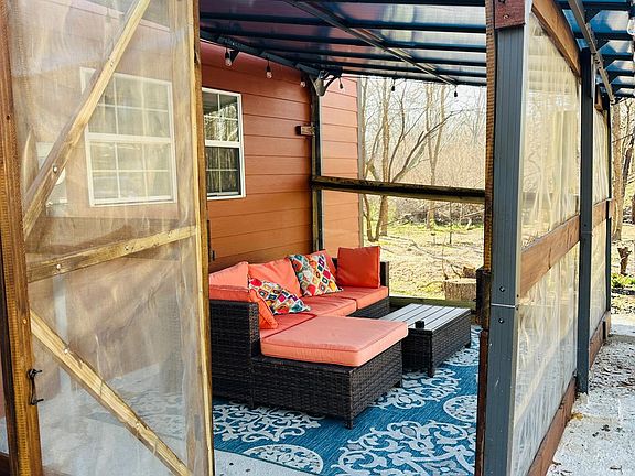 Step outside to enjoy two inviting patios one enclosed with a sunroom for cozy mornings, and another featuring hammock chairs for peaceful relaxation. The fire pit sits just steps from the home, creating a warm space for unwinding under the stars.