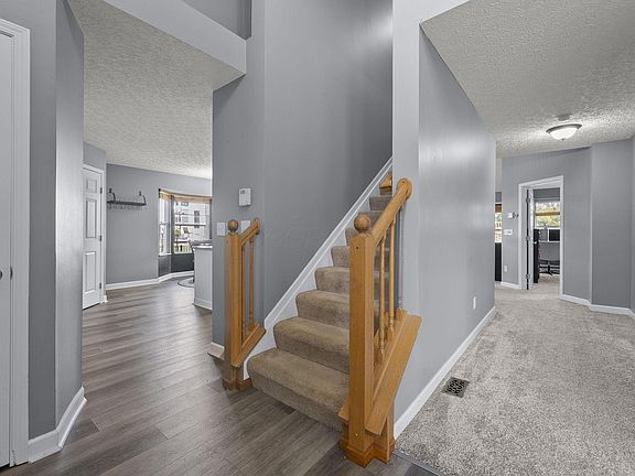This 3 bedroom, 2.5 bath home is located on a quiet cul de sac and backs to the community pond giving the perfect blend of peaceful setting and stellar location just minutes from all of the shops and restaurant that Blacklick and Gahanna have to offer. The first floor includes an office/den, half bath, laundry room, large kitchen with eat in space and open layout leading into the living family room. The family room has vaulted ceilings and overlooks the pond to the rear of the home. The first floor is rounded out by the primary suite featuring vaulted ceilings, a large bathroom and walk in closet. Upstairs there are two additional bedrooms and a full bathroom. The lower level is unfinished and ready for you to put your own touches on it. Out back there is a renovated deck overlooking the tranquil pond. Additional updates include new AC '22, furnace '20, water heater '25, sump pump '25, fridge '24 and first floor flooring '21