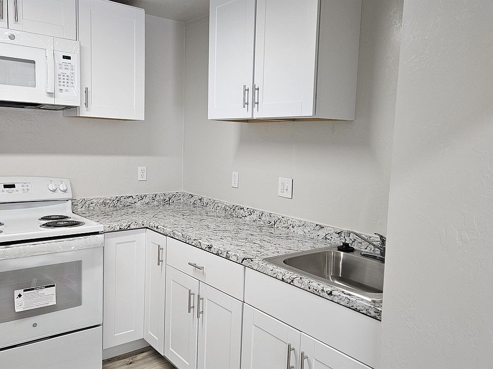 1 bedroom, 1 bath unit plus bonus room. Recently rennovated. Newer flooring, paint, windows, cabinets, appliances, tile, fixtures. Forced air heat and air conditioning, bonus room to serve as office or extra storage, and a HUGE walk in closet. Laundry facilities on site, separate entrance and parking in rear of building.