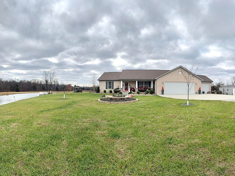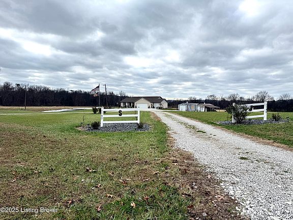 Discover peaceful country living at this stunning Bullitt County property featuring 5 acres, a large pond, and multiple outbuildings perfect for storage, hobbies, or equipment. This charming 3-bedroom, 2-bathroom home offers an inviting open layout,a tranquil sunroom overlooking the property, where gentle sunlight and scenic views make every moment feel relaxing, and an attached 3-car garage for maximum convenience. Relax on the lovely front porch, take in the serene views, and enjoy the privacy and space this property provides. With ample land, beautiful scenery, and room to grow, this home is perfect for anyone looking for comfort and country charm.