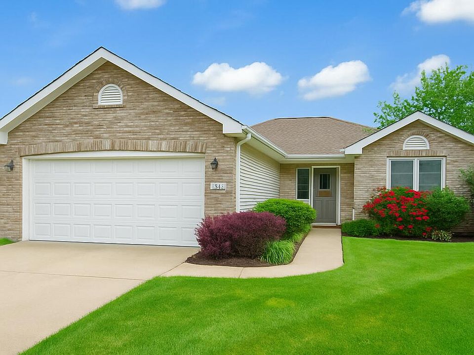 Don't miss out on this low-maintenance single-family ranch home tucked away on a quiet cul-de-sac in the heart of Crown Point. This 3-bedroom, 2-bath open-concept layout features hardwood floors in the living room, a tiled kitchen with breakfast bar, and a spacious master suite with a private bath and custom walk-in closet. Enjoy a finished laundry room, a bright sunroom perfect for relaxing or entertaining, and an attached 2-car garage. The vinyl-fenced yard offers privacy, a patio with power for a hot tub or lighting, and plenty of space to enjoy the outdoors. HOA is only 115/month.