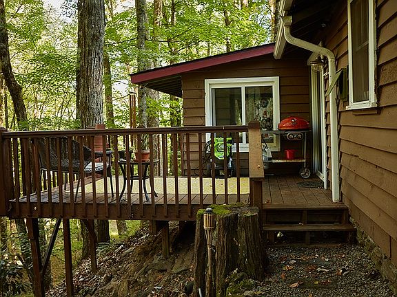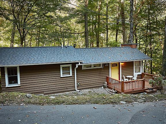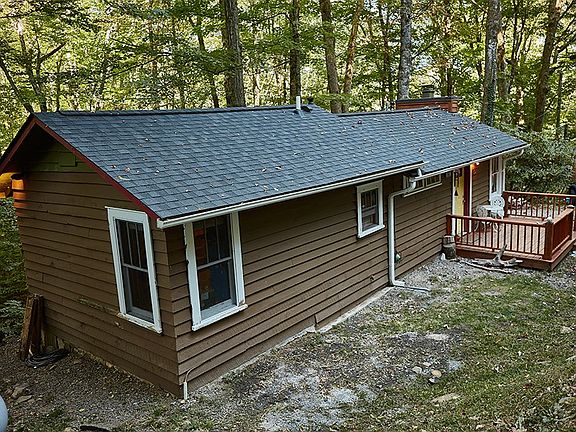 This little 2/1 is an excellent starter home for a Grad student or couple, or could be a busy rental. It offers fast access to Sylva or Waynesville, cool temperatures, and a wildflower hillside with a noisy creek. The home is a great blend of original materials and contemporary nuances. The second room feels like a tree house and the deck is a perfect outdoor space. Home has new roof, new tankless water heater, propane heat, and fireplace and baseboards. The storage building will not convey w home.