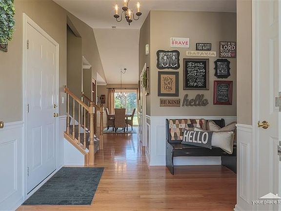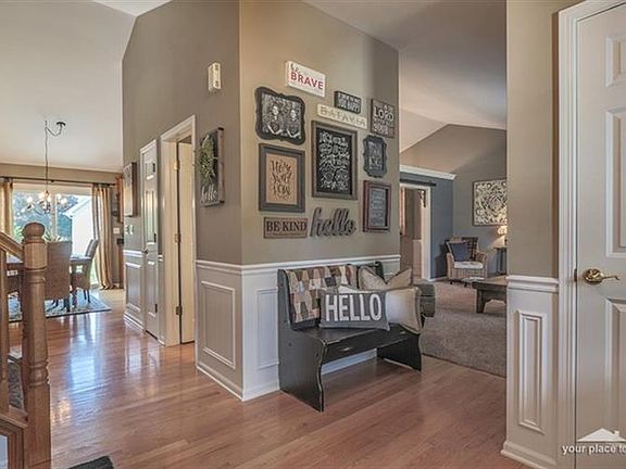 Meticulously maintained and updated home in Stonefield Subdivision. Enter this home to find an open floor plan with hardwood flooring, vaulted ceilings, custom woodwork, updated kitchen with granite and stainless steel appliances..opening into an OVERSIZED family room with high ceilings and tons of light! Enjoy updates throughout...fresh paint on all walls, trim and doors, new water heater and water softener, newer carpet, new exterior patio door and master bedroom shower doors! Second floor is complete with master suite with large walk in closet and private master bathroom. Two secondary bedrooms and full bathroom finish the second floor. Fully finished basement with new paint, crown molding, separate office den area...leading to laundry room and large crawl space for additional storage. Outdoor space is complete with stamped concrete patio, professional landscaping and new concrete driveway with third car bump out. Exterior of home was recently power washed and all exterior trim painted.