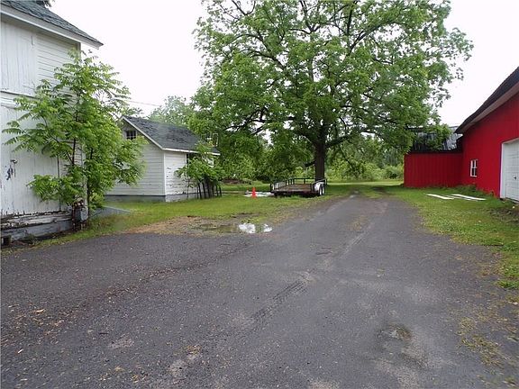 Lots of exposure on this prime 7.2 acre property on Route 5&20 to build your business, home or retreat. House has extensive fire damage and is not habitable. This generous property has driveways in place and a 90x30 steel building with several bays & tons of storage that was sided and roofed in 2017. Additional brick 1-car building has storage, electric and overhead area, Carriage house on site with 2nd floor could be nice rental unit. This deep property of approx. 871' almost abuts the Seneca canal and buyer could apply for special permit from state of NY Canal Corp. for usage of water rights....Great property to build on or expand your business. Possible owner financing.