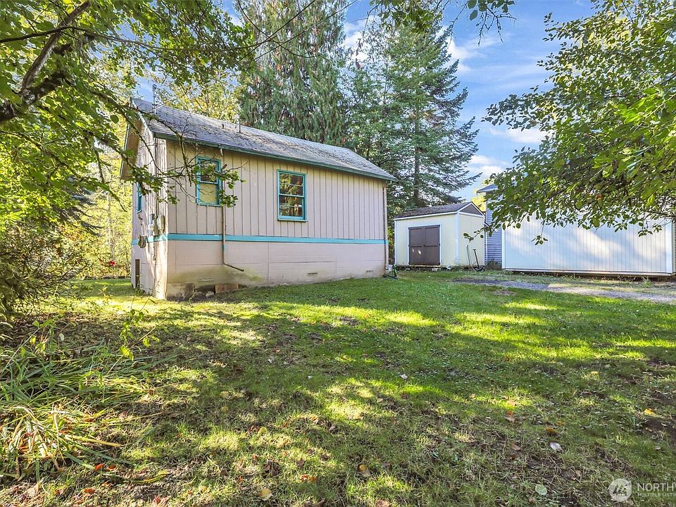 First time in 26 years this cabin on the South Stillaguamish river in the gated community of Rainbow Springs could be yours! 60+ feet of river front with a sandy beach perfect for fishing, swimming, or just relaxing on a warm summer day. Electrical was updated in 2011 and a new drain field was installed in 2024. Has public water which is a major plus. Large lot with apple, walnut, and hazelnut trees. Two storage sheds. RV parking. Next door is a one community parks of two. Update and remodel and turn it into a AirBNB. Seller will carry a contract. Needs some TLC. Sold AS IS!