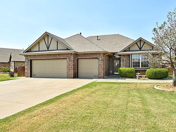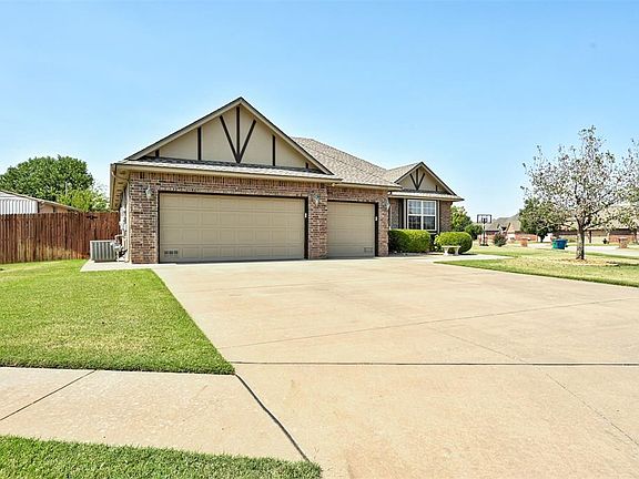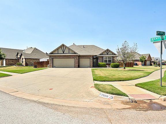 Wonderful 3 bed, 2 bath, 3 car garage home with a pool in Mustang Schools. Home is situated on an oversized 0.36-acre corner lot finished with an enclosed patio overlooking the AMAZING pool, pergola and large backyard! Inside you will find a very well-maintained, open concept living area with a corner fireplace, large living space and tons of natural light. Living is open to the kitchen and dining areas. Kitchen has great counter and cabinet space, granite countertops, stainless appliances, large pantry and breakfast bar. Main suite has a bay window that overlooks the backyard and is very spacious. Main ensuite features a double vanity, whirlpool tub, shower and a walk-in closet. Secondary bedrooms are all very spacious and have ample closet space. The backyard oasis begins with a wonderful, enclosed patio (not included in sq ft of home). Yard also features a 15 ft pool, pergola, jumbo storm shelter, shed/shop with power and a sprinkler system. Home also has a new roof (2023) with upgraded impact resistant shingles, automatic/electric roof vents for energy efficiency and cooling, new full gutter system, new garage door openers, a SECOND storm shelter in garage and a Genrac GENERATOR! This home truly has it all! Welcome Home!