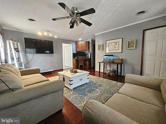 Check out this amazing one-level home nestled in the amenity rich community of Chesapeake Ranch Estates. After admiring the beautiful landscaping, enter from the front door, or a side door and you've just stepped into a spacious living room, with track lighting, a lighted ceiling fan, and a smartly designed, custom corner desk, which makes the ideal workstation for your desktop or laptop computer. Adjacent to the living room is the light and bright fully-equipped kitchen, which offers a laundry closet and, yes, the washer and dryer do convey! The kitchen is open to the step-down dining room which has many windows offering an abundance of natural light. The dining room offers a small bonus closet, which contains a desktop/workstation and makes for the ideal hideaway for those times that you need to get away to concentrate with minimal distractions. From the kitchen there is access to a half bath which connects to the master bedroom. The home features 2 additional bedrooms and a full hall bath. From the dining room, a door provides access to the custom deck, which overlooks the large rear yard, complete with 2 convenient storage sheds and a trampoline incase anyone gets jumpy. The community offers lots of events, 2 beaches with water access, community gardens, an airport, a campground, clubhouse, horseshoe pits, Lake Lariat, walking/biking/hiking trails and many other amenities. Come see this move-in ready home and make it yours TODAY!