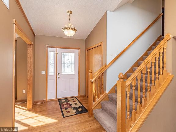 Great location, close to dining, shopping and recreation. Easy Access to Hwy 65 and 8 miles from 694 loop. 3 stall insulated garage, plumbed for natural gas Furnace and air compressor. Immense almost 1/2 acre corner lot featuring fenced in back yard, large deck/screen gazebo, fire pit area, lawn irrigation & storage shed. Calling all Backyard People! This incredible backard is to die for. Low maintenance front perennial garden. Mother-in-law suite with a wet bar, large bathroom & Jacuzzi (potential rental income). Large main floor office/den and a huge mudroom/laundry/craft/play room. Updated flooring, siding, roof, exterior doors, windows and more. Please see updates and features list in supplements.