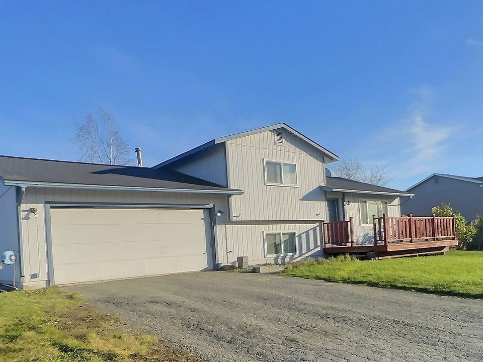 This is a great property for active life styles on a large, South Anchorage 13085 sq/ft corner lot with a fully fenced cedar back yard. The extra-large gate provides easy access to summer and winter Alaskan toy storage for kids at heart, pets and children. There is a large storage shed in the back yard to house any yard maintenance equipment, snow machines or 4 wheelers. The attached 500 sq/ft garage is able to house two sedans or one extra-large vehicle comfortably. West facing front and east facing back decks allow sunlight at all times of the day to enjoy spectacular Alaskan sunsets and sunrises. This home is located on the Anchorage bike trail system, mile away from an elementary school and park. Energy efficient upgrades in 2008 includes new roof and additional insulation. Installation of 92.0 energy efficient Rheem forced air natural gas furnace. All original windows have been replaced. Renter is responsible for utilities and yard upkeep