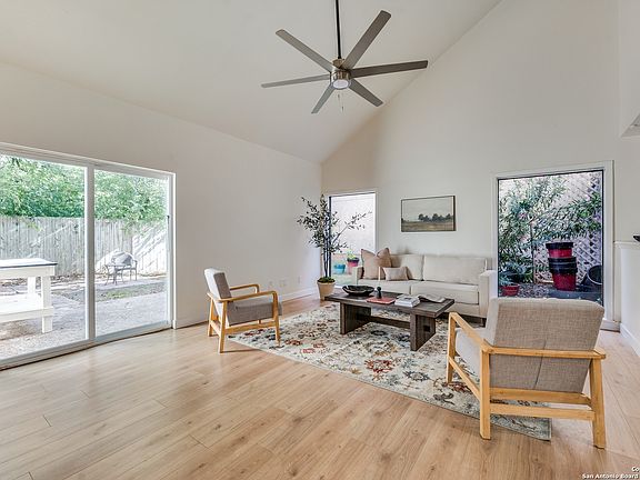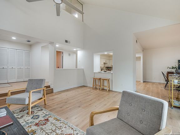 Renovated 3-bed + office on a greenbelt in North Central San Antonio. This 2,129-sq-ft two-story blends fresh style with functional space: oak-look laminate floors, alabaster interior paint, all-new ceiling fans, and two fully remodeled bathrooms. A deep backyard backs to a greenbelt for privacy and room to unwind. The bright kitchen is the showpiece with brand-new soft-close white cabinetry, gold hardware, a marble backsplash, and quartz countertops. Serve from a true "cook's zone" into a generous dining area and an oversized family room made for gatherings. Upstairs, a spacious primary suite anchors the private level, joined by two ample secondary bedrooms and a dedicated office for work-from-home or hobby use. A convenient half bath serves the main level. Highlights * 3 bedrooms + office | 2.5 baths | 2,129 sq ft * Fully renovated kitchen: soft-close cabinets, quartz, marble backsplash * Two remodeled bathrooms * Oak-look laminate floors and new ceiling fans * Greenbelt lot with a tranquil backyard Minutes to everyday essentials and major routes. Turnkey and ready for your move. Schedule your private showing today.