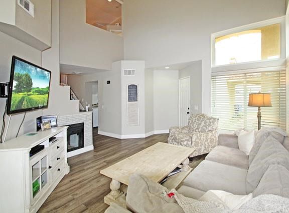 Wonderfully located on a quiet street in the community of Southridge Village. This fabulous single family home boasts 3 bedrooms & 3 bathrooms. Walking up to the front door, you will feel a sense of home. The inside is beautifully done with wood floors and upgraded carpet, custom paint throughout the entire house. The gracious living room welcomes you with its cozy fireplace. You will love the open kitchen that features breakfast area, granit counter tops, stainless steel appliances and a sliding door that leads to the backyard. Spacious Master Suite with vaulted ceilings and double closet with mirrors, en-suite master bath with dual sinks and a bathtub. All of the bedrooms are well maintained and amazing condition. This is truly a great home for entertaining on any kind or just a cozy home to relax in! Convenient located near freeways, schools, park & shopping center.