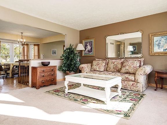 Welcome to this spacious home set on over 1/2 acre nestled in a cul-de-sac! The main level features a bright kitchen and dining area that flows into the inviting family room with hardwood floors and a brick wood-burning fireplace. Sliding door leads to a large cement patio for outdoor entertaining. The primary bedroom includes a private ensuite bath with a walk-in shower. Two additional bedrooms and a second full bath complete the main floor. The lower level offers additional retreat areas with two bonus rooms, a large recreation area, and ample storage. Enjoy the convenience of a 2-car attached garage with built-in cupboards. Major updates include vinyl siding (2.5–3 years), roof and gutters (1.5 years), and a newer sump pump (4 years). Comes with a 1 year American Home Shield Home Warranty for peace of mind. Schedule your showing today!