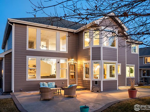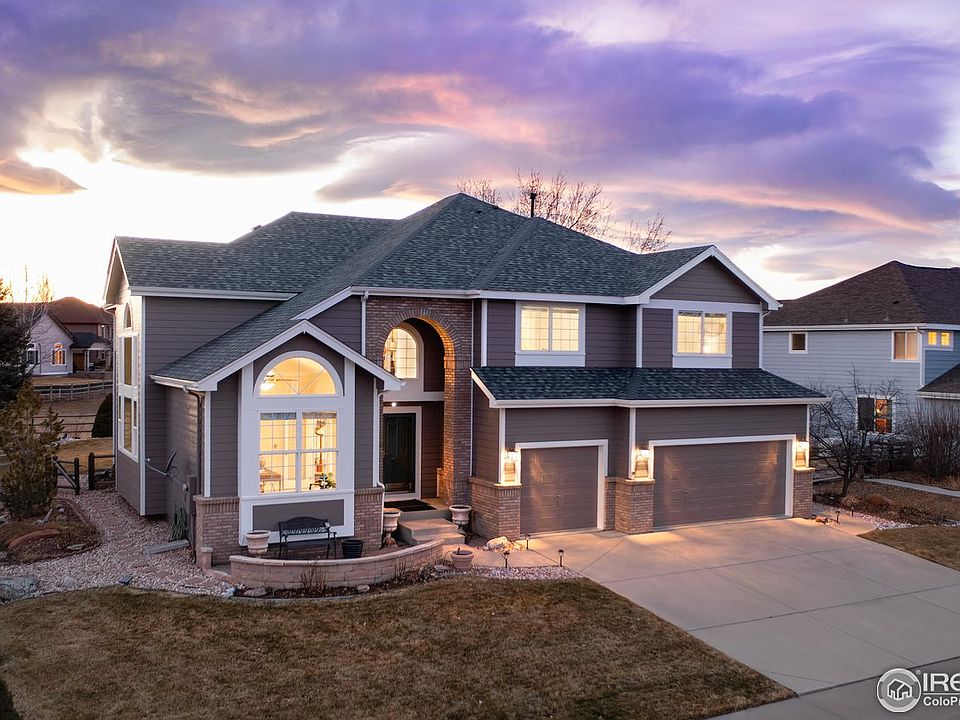 Exceptionally well-cared for one-owner home in desirable Elms at Meadow Vale neighborhood! Backs to HOA open space. The home is in pristine condition and includes newer furnace, A/C, hot water heater and a recently replaced roof. From the moment you step in the front door, you'll imagine yourself enjoying entertaining friends or quiet evenings at home. The elegant 2-story entry with soaring ceilings and walls of light-filled windows greets you as you enter the home. A main floor den, formal living and dining room, and an additional family room provide comfortable and flexible spaces. The island kitchen has granite counters, an eat-in nook place island seating and lots of culinary prep and pantry space. Opening to a vaulted family room w/gas fireplace & blower and ceiling fan. Upstairs, you'll love the leads to the beautiful primary suite with a view-filled bay window, spacious 5 pc bath, custom tile, 6' jetted tub, and spacious walk-in closet. Two additional bedrooms plus a loft area/bonus space provide comfortable sleeping and hobby space. A large unfinished basement may be used for workout or storage or make it your own by finishing the basement to your personal specifications. The 1/4 acre parcel has a picturesque, fenced back yard. Professional landscaped, the outdoor space features a 23'x40' patio, waterfall & pond, raised garden, rose garden, mature plants & trees and a partial views of Longs Peak. Irrigation water is provided by the HOA. This home is conveniently located close to major employers, shops, schools and ample recreational opportunities.