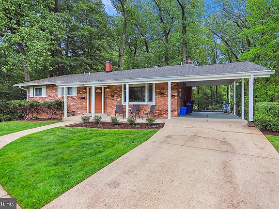 Welcome to this beautifully maintained and fully updated ranch-style home nestled on a quiet cul-de-sac in central Kemp Mill. This freshly painted rambler offers the perfect blend of comfort, functionality, and natural beauty. With two fully finished levels, every inch of this home is thoughtfully designed and move-in ready. The sunlit main level welcomes you with hardwood floors, a modern lighting fixture in the foyer, and a spacious L-shaped living and dining room perfect. The beautiful large kitchen features rich wood cabinetry, granite countertops, stainless steel appliances, and a table-space breakfast area with a charming bay window. A side door leads directly to the carport for everyday ease. Three bedrooms are located on the main level, including a spacious primary suite complete with an updated en-suite bathroom. Two additional bedrooms share another renovated full bathroom—each room filled with natural light and designed with ample closet space. The lower level is a true highlight of this home—perfect for extended living, entertaining, or working from home. Enjoy a large recreation room with brand-new carpet and a brick mantle wood-burning fireplace. Off the rec room is a private office space, ideal for remote work or hobbies. There’s also a spacious fourth bedroom and a full bathroom, perfect for guests or multi-generational living. The lower level includes a generous laundry room with multiple storage closets, and a versatile bonus room that can serve as a home gym, craft space, or media room. Step out back to a tranquil setting with a patio, grassy play space, and a charming swing set—all framed by breathtaking views of the surrounding woods. Recent updates include: Furnace (3 years), water heater (5 years), and roof (2 years). Rain gutter and drain system installed 7 years ago with a 40-year guarantee. This turn-key gem is a rare opportunity—fully updated, beautifully situated, and ready to welcome you home.