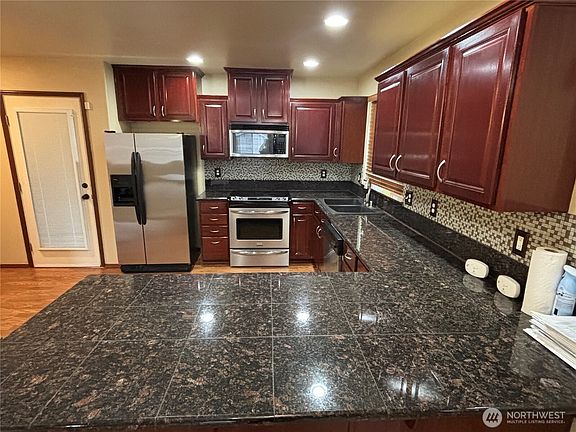 Must See!! Well maintained single family detached 3 bedrooms/ 2.5 baths townhouse in Alderbrook Village East. Bright open floor plan, kitchen w/breakfast bar, granite counter tops, stainless steel appliances, office nook, dining area. Living room with cozy gas fireplace, slider to covered balcony. Master suite with full bath and walk-in closet. 2-car tandem garage. Brand new roof, new paint inside and out, 1-year old hot water tank, newer washer & dryer. Central location, close to shopping centers and amenities, minutes away from Boeing and Paine Field.