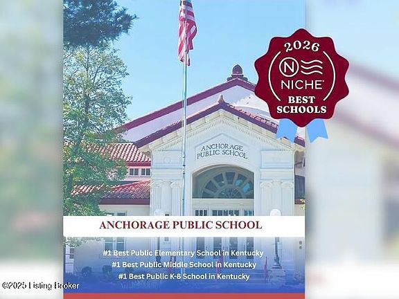 Priced below appraised value, this Anchorage home is perfect for families seeking space, comfort, and top-tier schools. Set on nearly 2 acres in the award-winning Anchorage School District, this five-bedroom residence blends timeless charm with modern updates. The first floor features three bedrooms, including the primary suite with soaring ceilings, soaking tub, and walk-in shower. This level also offers hardwood floors, a sunken living room with original brick accents, and a gourmet kitchen with birds-eye maple cabinetry, granite counters, large island, and JennAir appliances. Upstairs you'll find two more bedrooms and a versatile bonus space that has been used as an office. The ~750 sq ft of unfinished basement space offers plenty of storage space. Enjoy the serene, park-like backyard with two decks, a patio, and a custom-built playhouse crafted from wood reclaimed from the historic barn once located on the property. Additional highlights include an extra-deep 2-car garage, a separate garage converted into a finished gym space, circular driveway, tankless water heater, and high-efficiency HVAC system. Enjoy the charm, heritage, and small-town feel of Anchorage while having the convenience of being within walking distance to Shelbyville Road and just minutes from all the shopping and amenities of Middletowntruly the best of both worlds.