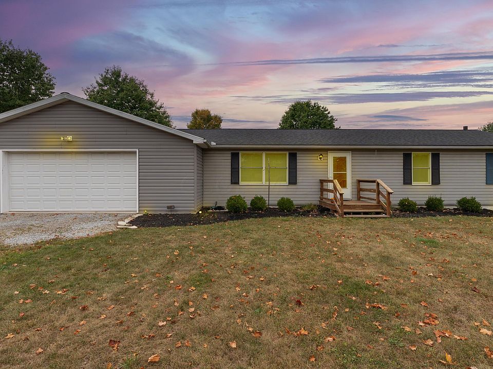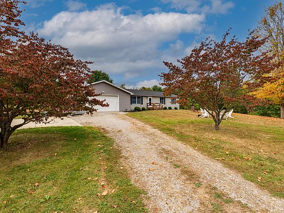 Discover the beauty of this 5+ acre property, nestled on rolling hills with stunning views of a neighboring pond. This 3-bedroom, 1-bath home includes a full walk-out basement, plumbed for an additional bathroom, and ready to be finished for extra living space. With newer mechanicals and roof, this home offers peace of mind. The oversized 2-car garage is ideal for hobbyists or extra storage. The fenced pastures are perfect for livestock, and the neighboring horse boarding farm adds to the country charm. At night, enjoy breathtaking views of the stars from your own backyard. Don't miss out on this serene, picturesque setting!
