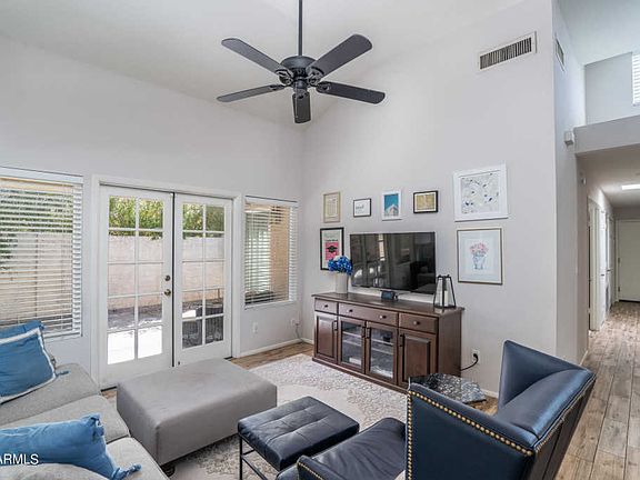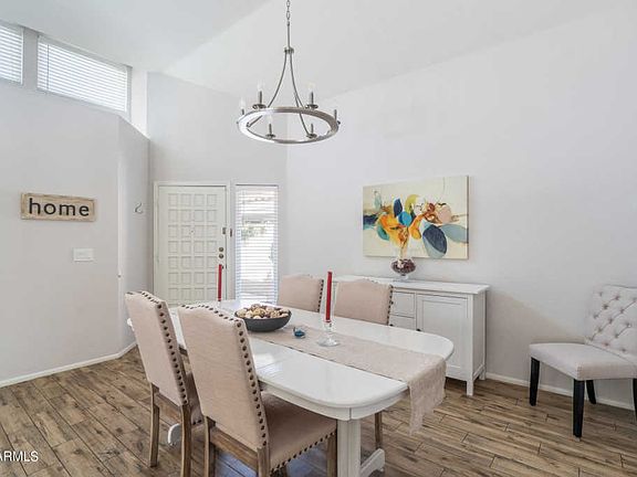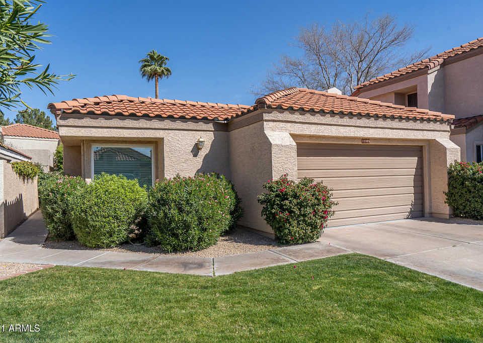 Located on a cul-de-sac lot in a prime north Phoenix neighborhood with easy access to the 51, this charming home offers 3 bedrooms and 2 baths in 1646 SqFt in an open floor plan with soaring vaulted ceilings and lots of natural light throughout. The kitchen features custom cabinetry, tile backsplash, solid-surface countertops, stainless appliances, recessed lighting, casual dining nook, and peninsula with breakfast bar seating. The family room has a cozy wood-burning fireplace with tile surround and built-in shelving and cabinetry. Designed for indoor/outdoor entertaining, the living and family rooms are divided by a pony wall with cabinetry and sink, perfect for a coffee bar or cocktail hour! Both living areas have access to the wrap-around patio with low-maintenance landscaping, leaving* you more time to enjoy the community pool! The master bedroom has double door entry, private exit to the patio, and en-suite bath with dual sink vanity, separate shower & jetted tub, and walk-in closet. Other features include a 2 car garage with epoxy floors, cabinetry, sink, & service door; new wood-look tile & carpet flooring, new interior paint, new dual pane windows, and much more! Schedule your showing today!
