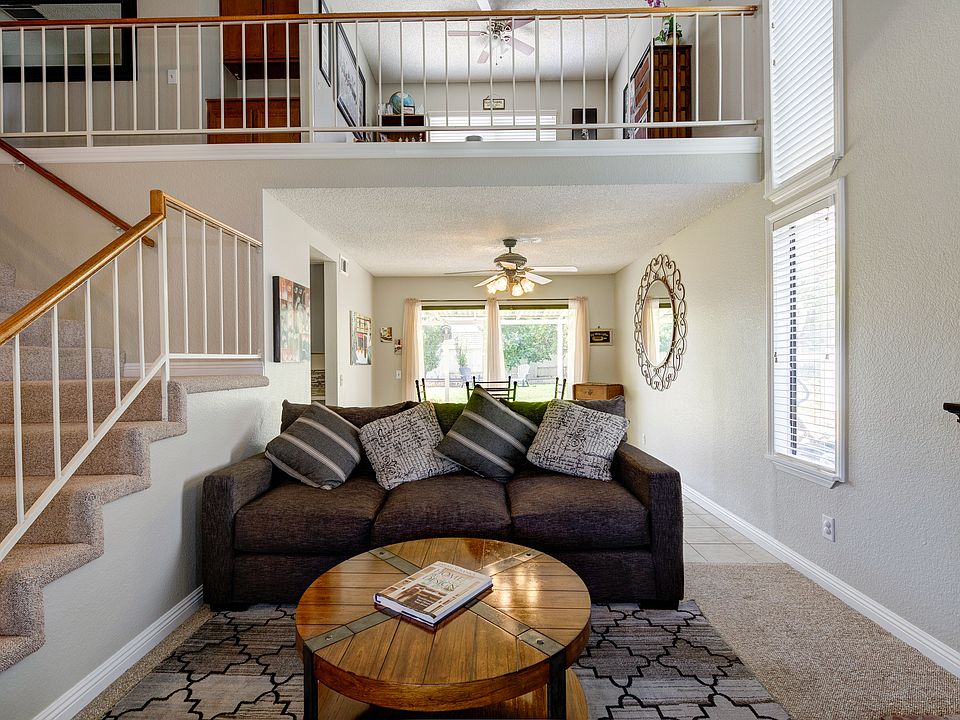 This beautiful house shows pride of ownership. The house is very light and open - and has lots of large windows. Some of the features of the home include: office/loft overlooking the two-story living room, beautiful brick fireplace (gas or wood burning), double-door entry, dining room, roomy kitchen with Corian counters, glass tile backsplashes, newer stainless steel range/oven, dining area, recessed lighting and garden window in kitchen, ceiling fans in every room, walk in closet in the master bedroom, special wiring in two bedrooms to be able to control lights and fans without getting out of bed, large covered patio and newer spa. No Mello Roos and no HOA. The landscaped yard is private and fenced and there are lots of fruit trees. The garage has a wall of built-in cabinets - lots of storage space. This beautiful home is located close to La Sierra University.