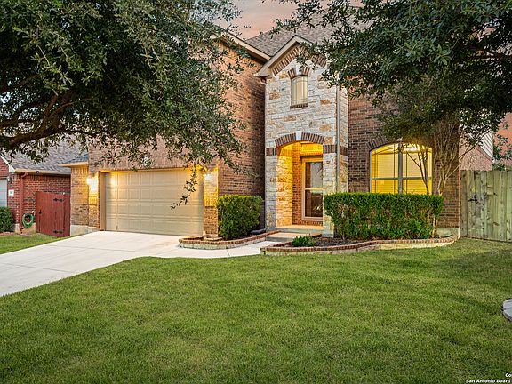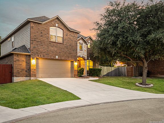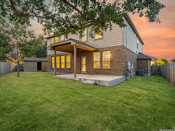 Welcome to your forever home! This beautiful four-bedroom, two-and-a-half-bath residence offers 2,700 square feet of thoughtfully designed living space. Located on a corner lot in a peaceful cul-de-sac in Alamo Ranch, this modern gem perfectly balances style and practicality. As you enter, you'll find a versatile dining area or home office, complete with a coat closet-ideal for family life. The open-concept design seamlessly connects the living space to an inviting eat-in kitchen, which features stainless steel appliances, granite countertops, and a spacious island perfect for busy mornings or entertaining guests. The living room is accentuated by a stunning fireplace and large windows that flood the space with natural light, creating a cozy atmosphere. Step outside to your private outdoor retreat, featuring a covered patio that's perfect for barbecues or quiet evenings. The expansive backyard, with no immediate neighbors behind, includes a well-equipped storage shed with electricity-great for storing outdoor gear or even a workshop. Upstairs, you'll discover a versatile loft space, ideal for a media room or play area, along with four generously sized bedrooms. The luxurious primary suite boasts a large walk-in closet and an en-suite bathroom featuring a relaxing garden tub and a separate shower. Additional highlights include fully paid-off solar panels for energy savings and an extended two-car garage that offers plenty of room for storage or a workout space. This home truly has it all-schedule your private tour today!