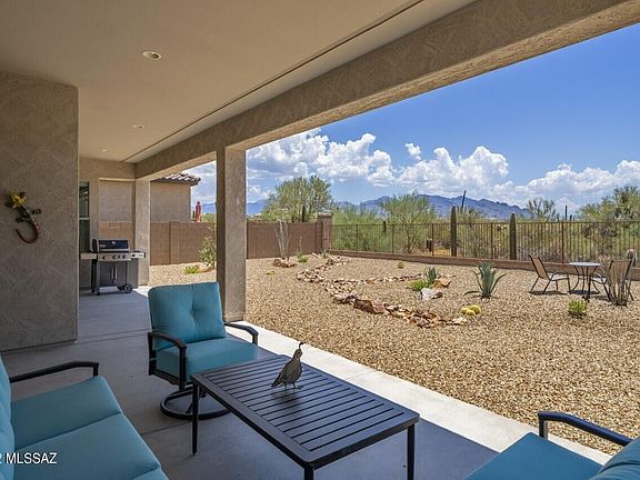 Very special offering in gated Pulte community of all single-story homes. Premium Lot with View Fencing and room for a pool, backs to expansive common area of natural desert & Catalina Mountains as a backdrop. 3 Bedroom/3 Bath split-plan w/separate Office/Den & Spacious Great-Room offers a long list of sought-after features: High Ceilings throughout, Large Kitchen Island, Granite Counters, Gas Cooktop, Stainless Appliances, enormous walk-in pantry to hold all your goodies; expansive Covered Patio; Fire Suppression System; Tankless Hot Water; whole house Water Softener. Primary Suite boasts: huge closet, large walk-in shower & dual vanities. 3-Car insulated Garages offer extra storage/room for workshop. Low HOA fees. EZ access to neighborhood park, shopping & I-10. A must see