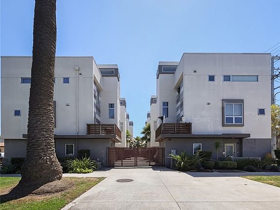 Stunning 3-story modern home with rooftop deck in the Oval District of Mar Vista, designed by Killefer Flammang Architects. This meticulously cared for 3-bedroom, 3-bathroom single-family residence boasts 1675 square feet of luxurious living space, featuring strand woven bamboo floors, an inspired kitchen with a dining island, high end appliances and finishes, and quartz countertops. The flexible downstairs area can be transformed into a separate living space, office, or in-home gym, perfect for modern lifestyles. Each bedroom offers an ensuite bathroom for utmost convenience. Noteworthy upgrades include custom California Closets in the primary bedroom and built-ins in the other upstairs bedroom. The primary suite features a Juliet balcony, adding charm and natural light. The secondary upstairs bedroom showcases marble mosaic tile in the bathroom, blending elegance with functionality. Outside, enjoy drought-tolerant landscaping and a gated driveway for added security. The garage, equipped with a level 2 EV charging outlet, accommodates two cars, reflecting practicality in design. Experience modern living at its finest with panoramic views of Los Angeles from the rooftop deck, fully equipped with a wet bar and mini fridge. Situated within walking distance to Mar Vista Farmers Market, popular restaurants, and 10 minutes from the Venice Pier, and Downtown Culver City, this home offers convenience and sophistication in a vibrant neighborhood setting.