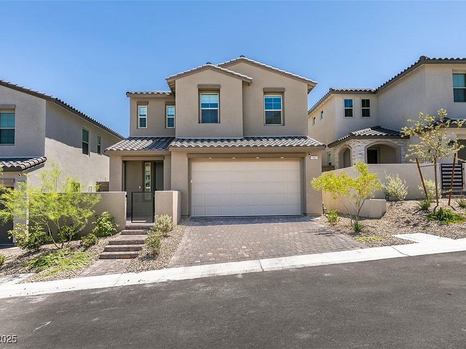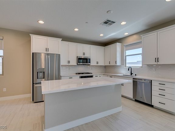 This elegant 2 story retreat with designer finishes & a private upstairs balcony with a full view of the famous Las Vegas Strip is move in ready! Step into refined comfort with this stunning 2-story home, where modern luxury meets everyday functionality with 4 bedrooms and 3 beautiful bathrooms. This residence offers the perfect blend of style, space, serenity. Offering luxury vinyl plank flooring throughout the main living areas for a sleek, durable finish and plush carpeting in bedrooms for cozy comfort. Equipped with Quartz countertops and stainless steel appliances, the kitchen is perfect for entertaining. If you like the outdoors, it even has accessible hiking trails around the community. This one has it all!