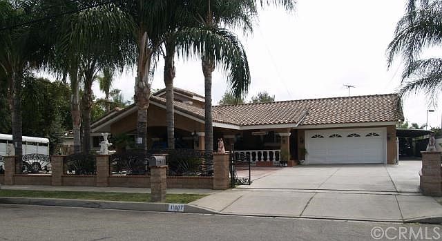 Hard to find horse property with 3 stall barn, corral, tack room and wash rack area. 2 car garage in the front of home plus a covr'd carport w/a huge covr'd front porch w/custom lighting and extensive use of pavers. There is also a separate 2 car garage for all your extra vehicles in the rear of the property which is also fully covr'd w/ total access to backyard for horse trailers, toys, etc. How would you like a party bonus room or possible guest house with around 600 sq. ft.? This room has access doors out to pool area and is adjacent to garage in rear with/wall heater and even has access to a totally remodeled .75 bath with shower for your company that shows up for an extended visit! Kitchen has been recently remodeled w/ granite, stainless steel stove and tiled floors. Cozy fireplace in the living room plus an oversized separate formal dining room. Large master bedroom and bath which has sliding glass doors taking you out to pool area. Seller has put a lot of $$$$$ into this property! Inviting fenced in pool plus a separate above the ground spa . Huge covered patio area is perfect for your parties and bbq's. Closed circuit TV security system included. Offer is contingent upon seller finding home of choice and concurrent closings.