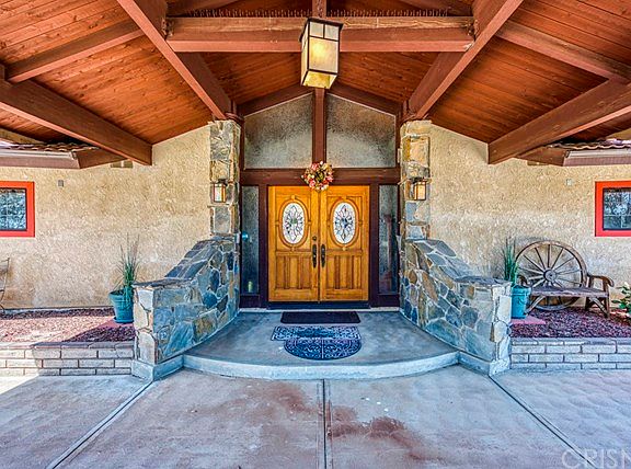 Gated single-story Ranch Estate. This custom built home boasts 3,836 sq. ft. with plenty of room for combining indoor and outdoor entertaining on a sprawling 5 + acres. Upon arriving, the home welcomes you with a Porte 'cochere trimmed with Bouquet Stone and a massive circular driveway. Enter the home through double doors into the foyer with wood flooring that leads to the grand living room with vaulted wood beam ceiling, fireplace, lighted built-in display cabinets and a wall of window out to the backyard pool, spa and custom gazebo overlooking the property. Eat in kitchen with tiled counters and floor, center cooking island, double door pantry, double ovens, warming drawer, JenAir cook top, built-in desk, side-by-side Subzero refrigerator and freezer. Spacious formal dining room that easily hosts 10 guests for dinner along with views to the back yard. The spacious Family room with wood floors has a fireplace, a huge L shaped wet bar with refrigeration, built-in wine rack and cabinetry. Off the family room is a private office with adjoining bath and shower that has direct access to the backyard. The bedrooms have cedar lined closets and ceiling fans. The Primary suite has a separate retreat area, a large cedar lined walk-in closet, French doors with direct access to the backyard. Baths with double sinks, one jetted soaking tub and separate dressing area. There is a padded area which could accommodate horse facilities. The yard is an extra treat with a lighted volleyball court adjacent to the pool, spa and gazebo along with lemon, lime, peach, apple and apricot fruit trees. The property is line with mature eucalyptus and pepper tress. Extras Include: Solar, Ring Alarm System, Intercom System, Nest Technology, dual soft water system, 2 wells, whole house vacuum, dual heat & A/C systems, recirculation pump, crown molding throughout, in-door Laundry Room, Storage galore, reverse osmosis. And plenty of room to park multiple RV's, Trailers and Toys.