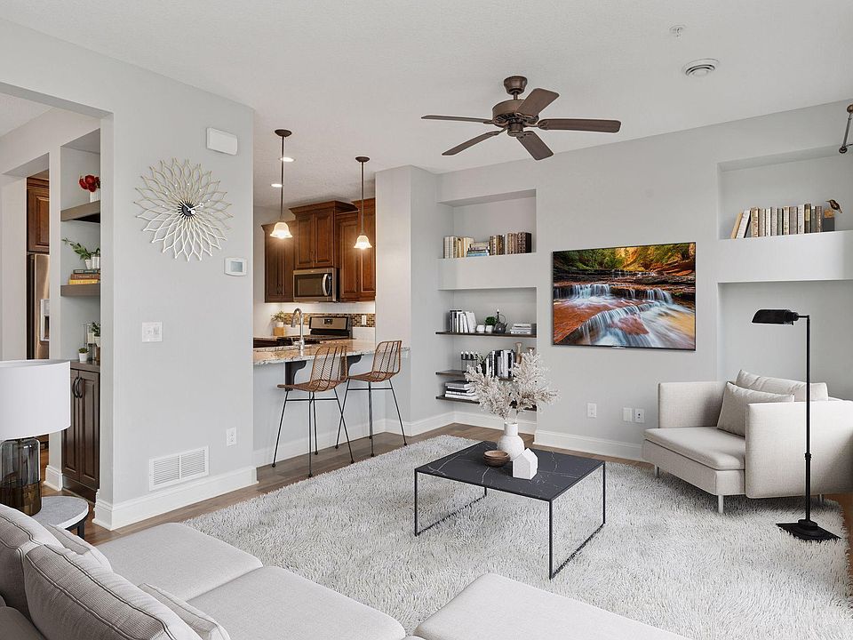 STUNNING END-UNIT home features 3 spacious bedrooms, 2 full baths, and a convenient powder room. The oversized windows throughout flood the home with natural light, creating bright, sun-drenched spaces. The lovely foyer welcomes you inside,to find a recently remodeled home that perfectly reflects current design trends. The mudroom and main floor laundry make for convenient living. Enjoy the additional loft space, ideal for a cozy hangout or study area. The spacious primary bedroom includes an ensuite bath with a separate tub and shower, along with a large walk-in closet. This retreat overlooks a serene pond, providing a peaceful and private ambiance. With modern updates and thoughtful details throughout, this home offers the perfect blend of functionality and tranquility. Don’t miss out on this exceptional property!