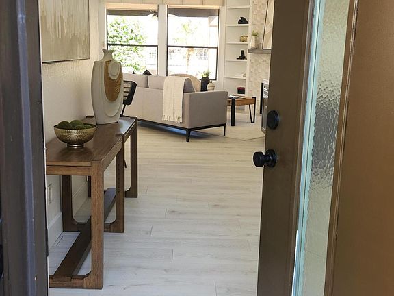 STUNNING REMODEL DONE WITH CHARACTER AND STYLE IN THIS 24/7 GUARD GATED GOLF COMMUNITY! DESIGNER TOUCHES EVERYWHERE YOU LOOK! BRAND NEW KITCHEN W/PROFF STNLS APPLS, QUARTZ COUNTERS AND CUSTOM BACKSPLASH! 42INCH WOOD/SELF CLOSING CABS AND LOTS OF COUNTER SPACE W OPEN VIEWS TO GOLF COURSE!! YOU WILL INSTANTLY NOTICE THE 3 DIMENSIONAL TILE WALL OVER FIREPLACE! STAND ALONE ENTERTAINMENT STATION WITH QUARTZ COUNTER AND CUSTOM WINE COOLER! VAULTED CEILINGS IN LIVING AREAS GIVE A GREAT OPEN FEEL! LARGE PRIMARY WITH 10' CEILINGS AND STAND OUT SLAT WALL SET THIS APART! PRIMARY BATH IS RESORT LIKE WITH NEW LUXURY TILE AND FIXTURES AND DOUBLE VANTY WITH ACCENT TILE WALL AND TUB! 2ND BEDROOM IS LARGE AND ATTACHED TO CUSTOM HALL BATH W DESIGNER TILE SURROUND AND STANDOUT NEW VANITY! MUST SEE!TURN KEY! ALL NEW LIGHT UPGRADED LAM FLOORING AND TILE..NO CARPET!