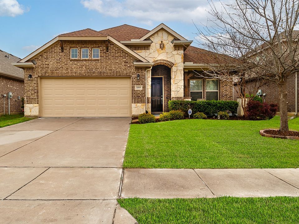 Nestled within Little Elm ISD, this warm family home exudes warmth and delight. Step into the inviting formal dining room adorned with exquisite wooden floors, complemented by trey ceilings accented with crown molding, providing ample space for hosting guests and family gatherings. The kitchen boasts beautiful wood floors, granite countertops, an under-mounted sink, and sleek dark appliances, all enhanced by ample storage space. A spacious island with seating for 3-4 people seamlessly connects the kitchen to the living room, creating an open atmosphere. Retreat to the cozy master bedroom flooded with natural light from the backyard. The master bathroom features a double vanity, a large garden tub, and a walk-in shower. Outside, the meticulously manicured front yard welcomes you home, while the backyard oasis includes a covered patio, offering plenty of space for family activities, pets, or the potential addition of a pool. Plus, don't miss the generously sized laundry room.