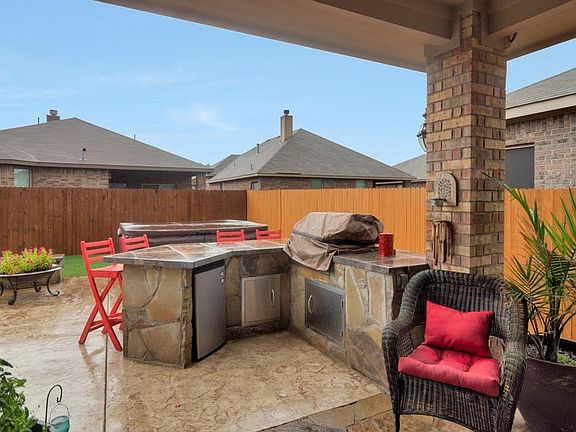 WELCOME HOME!! It's not too late to secure your dream home with the perfect outdoor living space in time for the fall! This home boasts a spacious living room with vaulted ceilings and opens to the inviting kitchen with granite countertops, stained cabinets, and matching appliances. The spacious spare bedrooms are split away from the master suite. Master suite features windows on both sides of the bed, dual sinks, separate shower and garden tub, and large walk-in closet. The covered back patio features a luxurious stone kitchen area with built-in grill and space for a mini fridge, pad for a hot tub, and additional seating for guests. Neighborhood features miles of walking trails, pools, and playgrounds.
