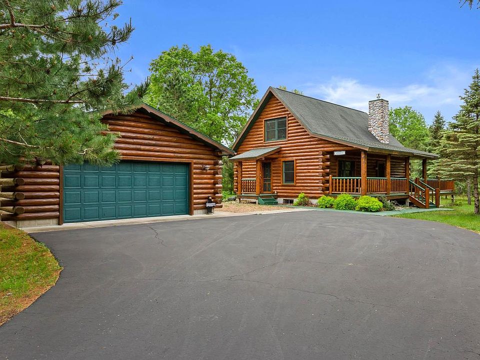 Lake Arrowhead Lake Access Home! Logs & Leisure! Pull out of the Fast Lane and into Leisure Lane! Unwind on the covered porch overlooking 1.7 wooded acres, catch some rays on the backyard deck, or "chill out" in the sauna. This gorgeous, fully furnished, superbly maintained log home is what getaway dreams are made of; an absolute stunner! Open great room w/ a high cathedral ceiling finished in pine and log beams, fieldstone gas fireplace, LVP flooring, and patio doors to the rear deck; efficient kitchen w/ work island, breakfast bar and adjacent dining space; ML bedroom, full bath and laundry room; upper level master suite with full bath; nicely finished LL w/ family room, stone/gas fireplace, wet bar, pool table, and bonus room with sauna; private backyard; 2-car garage; asphalt drive.